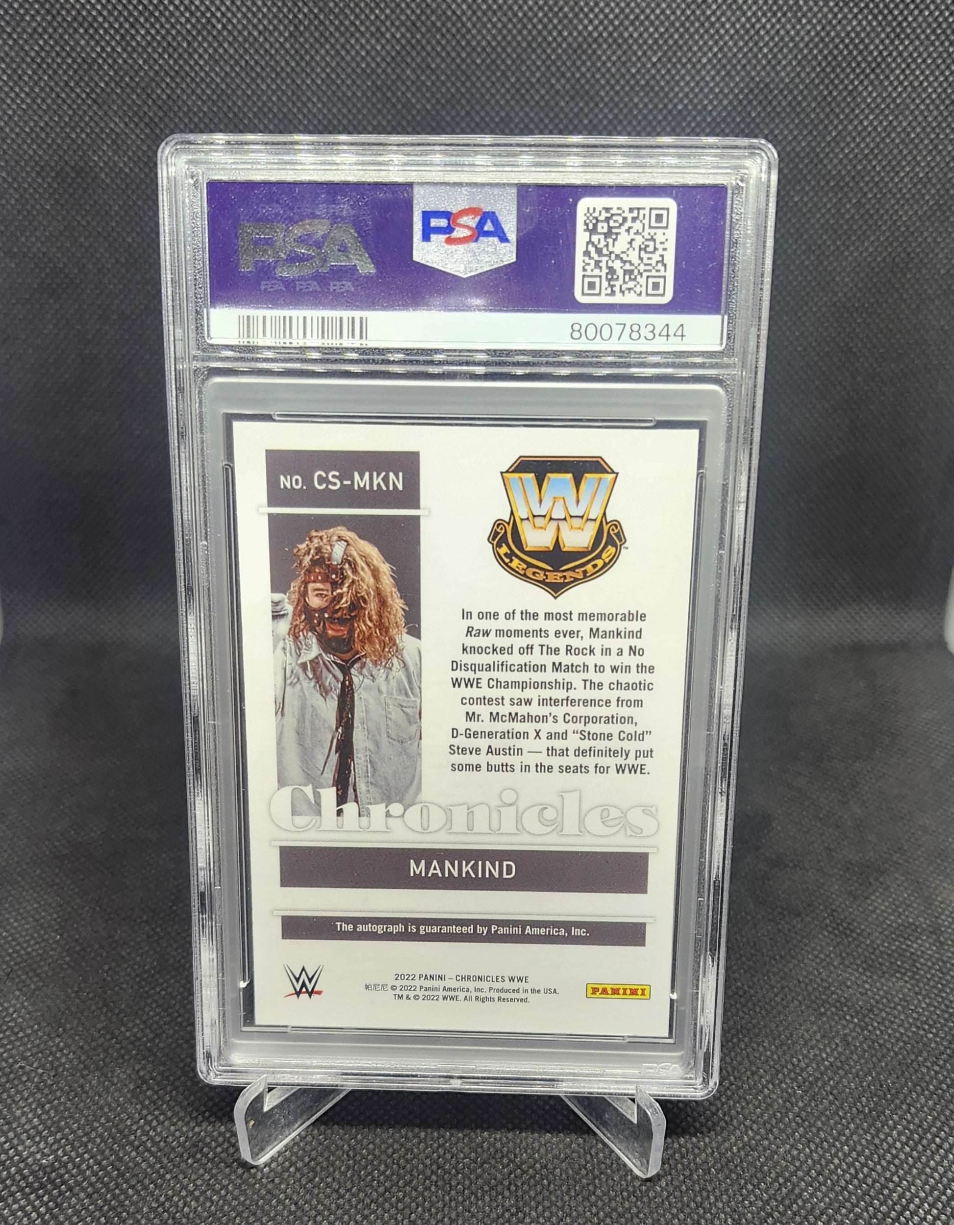 MANKIND Auto 2022 Panini Chronicles WWE PSA NM-MT 8 AUTO 9