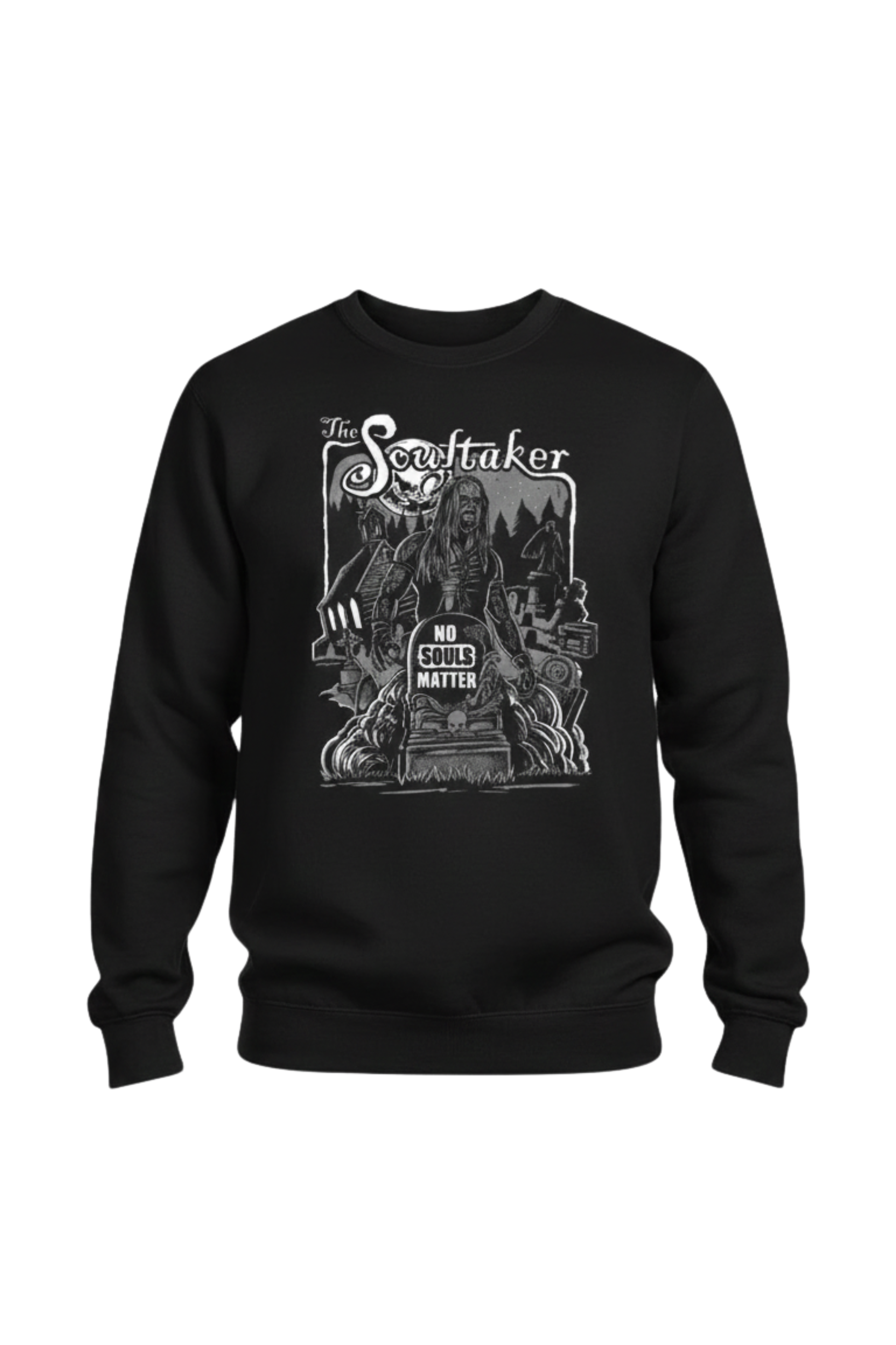 Warmth for the cold, dark nights. This dual-sided sweatshirt captures the chilling essence of The Soultaker, keeping you comfortable while pledging allegiance to the darkness!